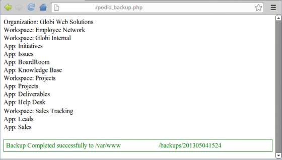 Note that you'll only need to enter the API and user details once. The next time you load the backup script page in your browser, it will automatically just run the backup process.
